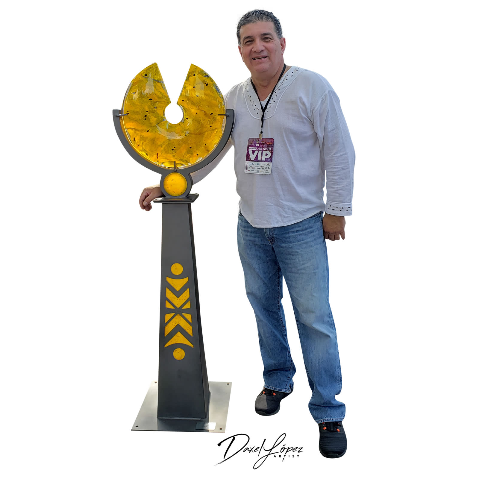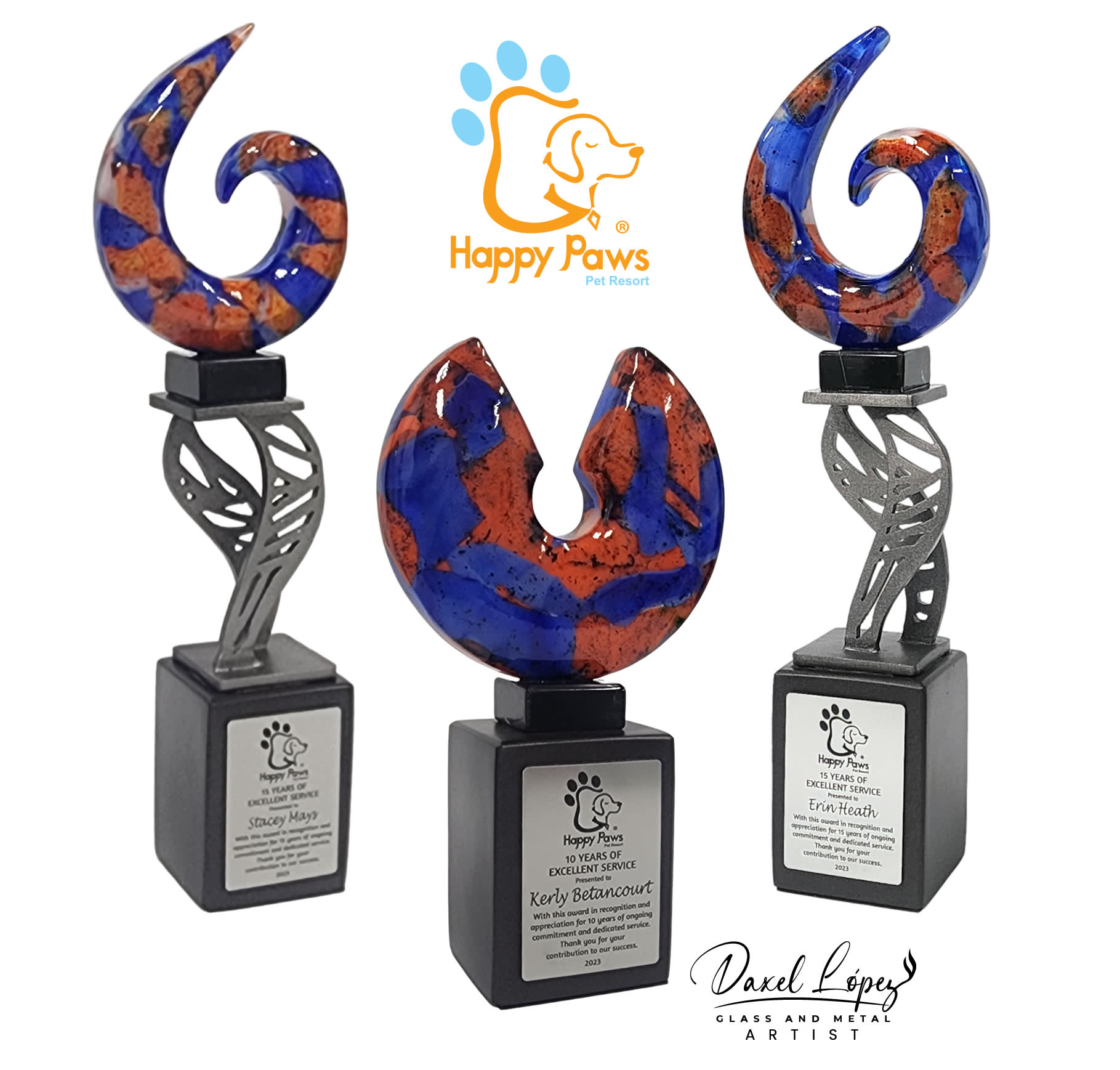 Daxel A. Lopez is a talented Hispanic artist originally from Moca, Puerto Rico, and now based in Clermont, Florida. With a multifaceted educational background, Dax earned a BA in Marketing from the Interamerican University of Puerto Rico in 1990. Leveraging his education and passion for creativity, he founded Dax Art Studio in 1991, where he has been bringing his artistic visions to life ever since. Over the years, Dax has enriched his artistic practice by participating in numerous international studio courses across Puerto Rico, Venezuela, Italy, and the United States. Specializing primarily in glass art, he also works with metal and ceramics, continuously exploring and mastering various techniques such as fusion, casting, lost wax, and 3D form casting to craft intricate glass forms adorned with vibrant patterns and colors. More recently, Dax has expanded his artistic repertoire by incorporating metal materials into his work, employing techniques such as touch cutting, welding, and 2D metal casting to add depth, dimension, and a unique tactile quality to his creations. From a young age, Dax has been captivated by the transformative power of art and the ability of artists to convey emotions and ideas through different materials. Inspired by this fascination, he began his artistic journey, manifesting his visions in tangible, visual forms. At Dax Art Studio, he specializes in creating unique and innovative sculptural pieces that blur the lines between art and functional design, ranging from large-scale sculptures to smaller works, including murals, architectural forms, garden pieces, and recognition awards. In addition to his studio practice, Dax has participated in several group exhibitions, showcasing his work in a variety of artistic spaces and gaining recognition for his distinctive artistic voice and innovative approach to glass art. Through his ongoing exploration, experimentation, and dedication to his craft, Dax continues to push the boundaries of traditional glass art, creating captivating and unique pieces that resonate with collectors, art enthusiasts, and audiences alike. Dax Art Studio specializes in the refined artistry of glass and metal, seamlessly blending time-honored craftsmanship with innovative, contemporary design. Our custom sculptures, awards, and architectural installations stand as a testament to our unique fusion of creativity, precision, and artistic vision. Committed to excellence, we craft each piece to reflect the individuality of our clients, ensuring every creation is both a functional masterpiece and a work of art. With over three decades of experience in the art world, our founder brings together deep expertise in glass craftsmanship and a bold, forward-thinking design approach. More than 12 years have been dedicated to mastering the complexities of glasswork, achieving a level of finesse and detail that is unmatched. With 29 years of experience creating custom awards, he has an exceptional ability to transform ideas into tangible, captivating works that carry both meaning and beauty. Our portfolio features striking glass sculptures, intricate metal compositions, and tailor-made awards that harmoniously combine traditional techniques with modern aesthetics. Each creation reflects a distinct artistic perspective and meticulous attention to detail, making it perfect for enhancing spaces, celebrating milestones, or honoring achievements. Dax Art Studio se especializa en la refinada artesanía del vidrio y el metal, combinando a la perfección la artesanía tradicional con un diseño innovador y contemporáneo. Nuestras esculturas, premios e instalaciones arquitectónicas personalizadas son testimonio de nuestra fusión única de creatividad, precisión y visión artística. Comprometidos con la excelencia, elaboramos cada pieza para reflejar la individualidad de nuestros clientes, garantizando que cada creación sea tanto una obra maestra funcional como una obra de arte. Con más de tres décadas de experiencia en el mundo del arte, nuestro fundador aúna una profunda experiencia en la artesanía del vidrio con un enfoque de diseño audaz y vanguardista. Más de 12 años se han dedicado a dominar las complejidades de la cristalería, logrando un nivel de delicadeza y detalle inigualable. Con 29 años de experiencia en la creación de premios personalizados, posee una capacidad excepcional para transformar ideas en obras tangibles y cautivadoras que transmiten significado y belleza. Nuestro portafolio incluye impactantes esculturas de vidrio, intrincadas composiciones de metal y premios hechos a medida que combinan armoniosamente técnicas tradicionales con la estética moderna. Cada creación refleja una perspectiva artística distinta y una atención meticulosa a los detalles, lo que la hace perfecta para realzar espacios, celebrar hitos o honrar logros.Dax Art Glass Studio / Sundax