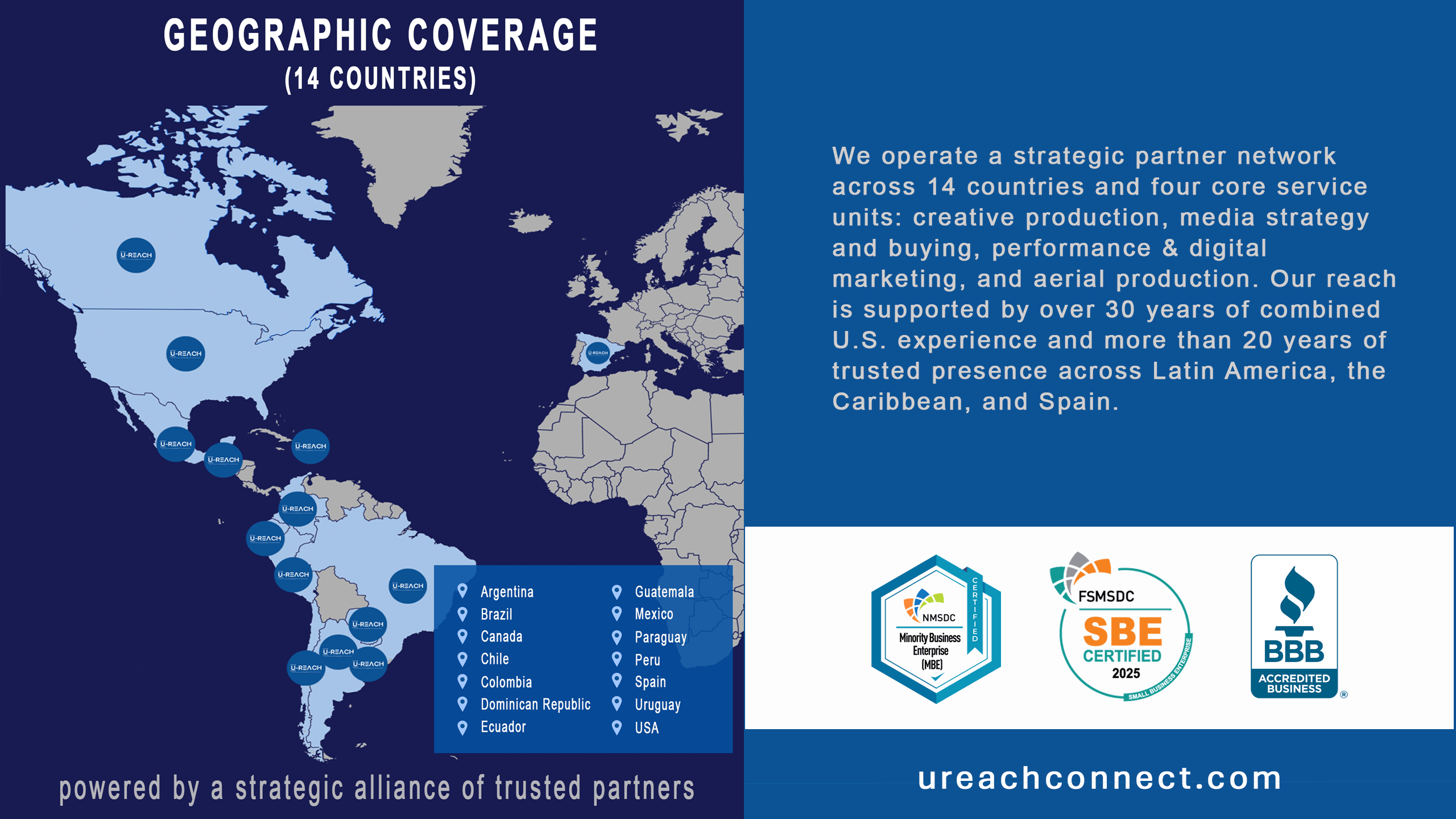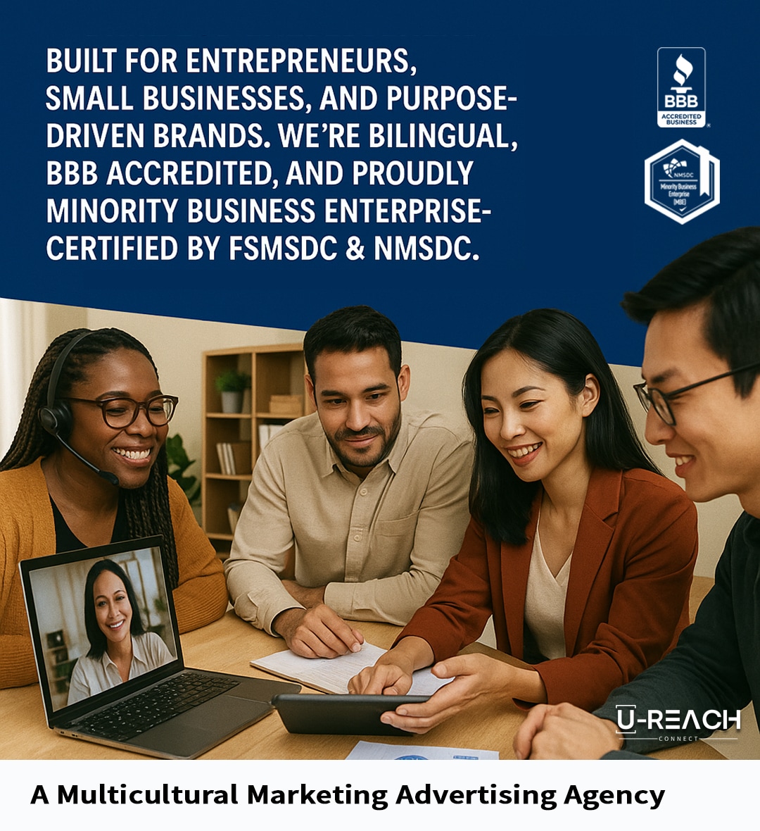 U-Reach Connect is a dynamic multicultural marketing and advertising agency dedicated to helping businesses connect authentically with their audiences. We craft compelling brand stories, design high-impact advertising campaigns, and execute strategic media placements that drive real engagement. Our expertise spans marketing consulting, media buying, direct mail and display advertising, public relations, and video production. With a deep understanding of diverse markets and consumer behavior, we create customized, data-driven strategies that ensure our clients’ messages reach the right people at the right time—maximizing visibility, impact, and growth. U-Reach Connect is a dynamic, remote-first multicultural marketing and advertising agency built for entrepreneurs, small businesses, and purpose-driven brands. More than services, the agency offers:U-Reach Connect