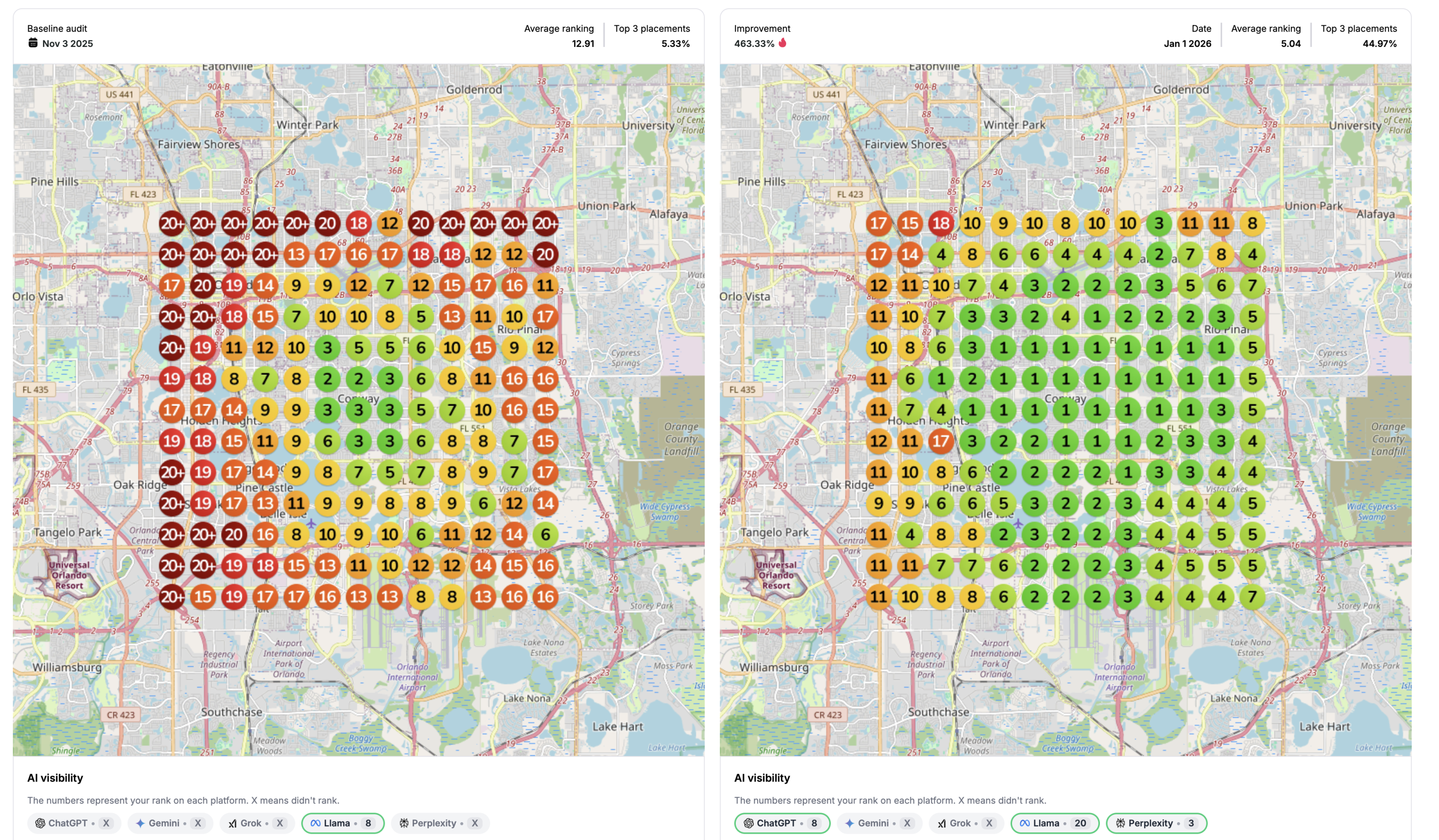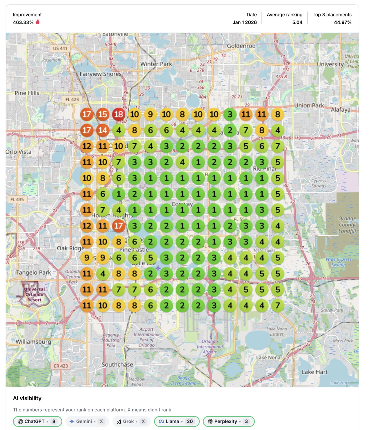 ✅ Local keyword & grid ranking analysis for Orlando searches